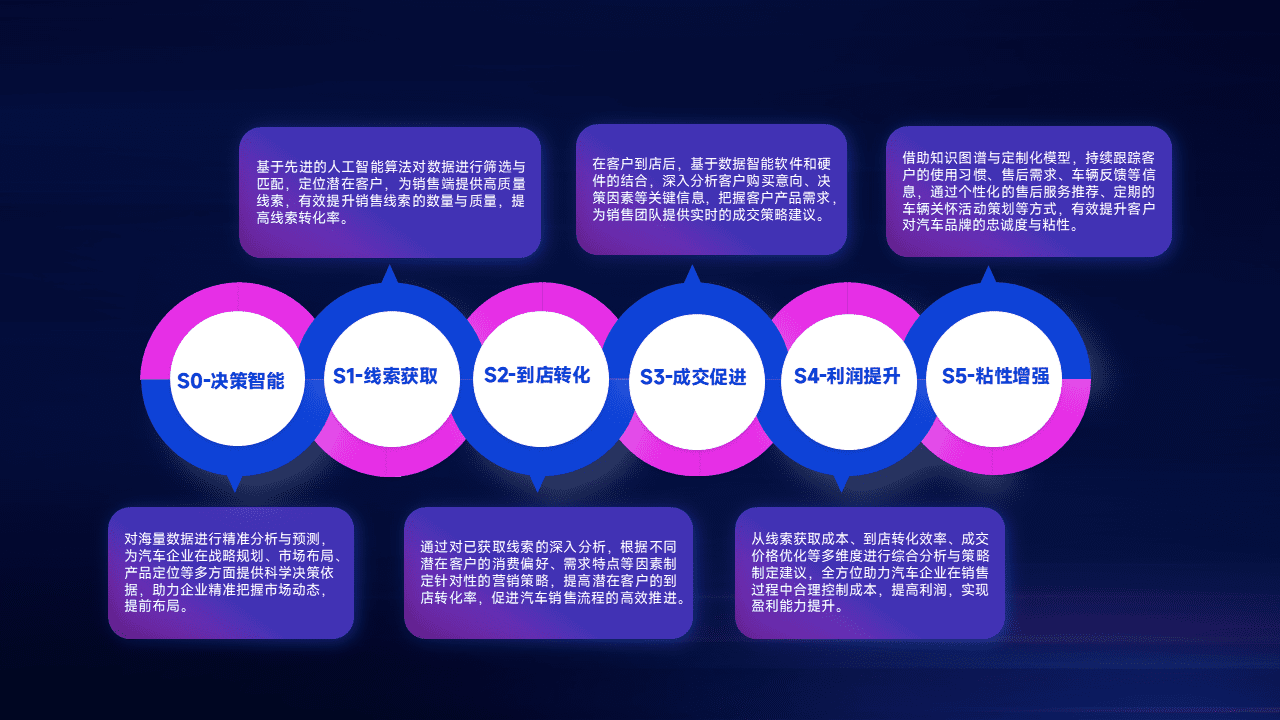 通过拓宽潜在客户来源、、、优化线索分配并提高到店转化率,,,以增强销售效率。。。。同时,,,利用线索数据不断优化分析模型,,,有效提升转化率,,,,扩大营销影响力。。。。